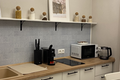 - Кухня оборудована плитой, микроволновой печью, холодильником, чайником и кофе машиной.