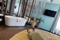 Номер джуниор сюит «Дизайнерский» с большой круглой кроватью диаметром 2 м и ванной в номере площадью 34,8 кв.м. Дополнительно в номере есть ванная комната с душевой кабиной.